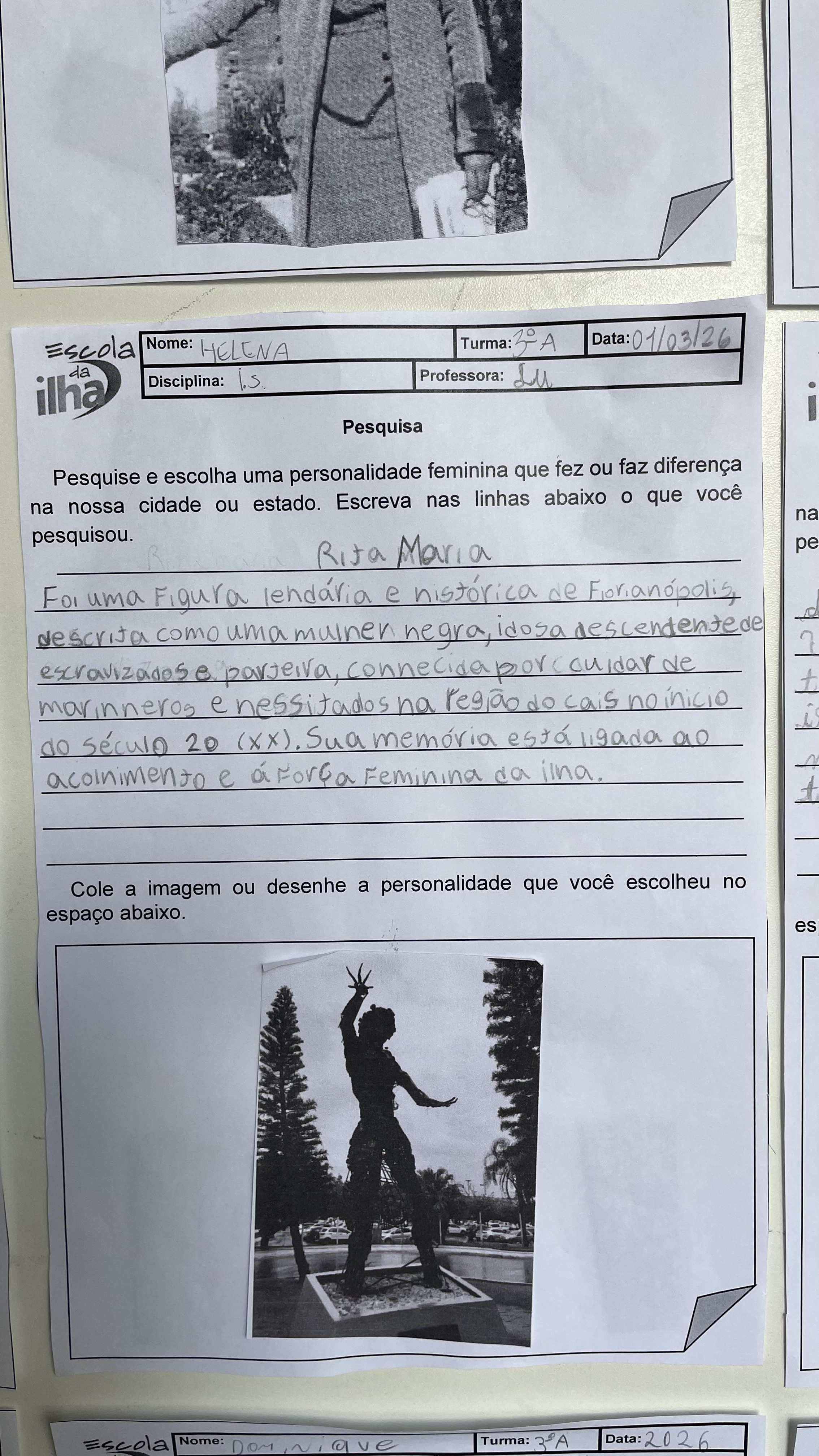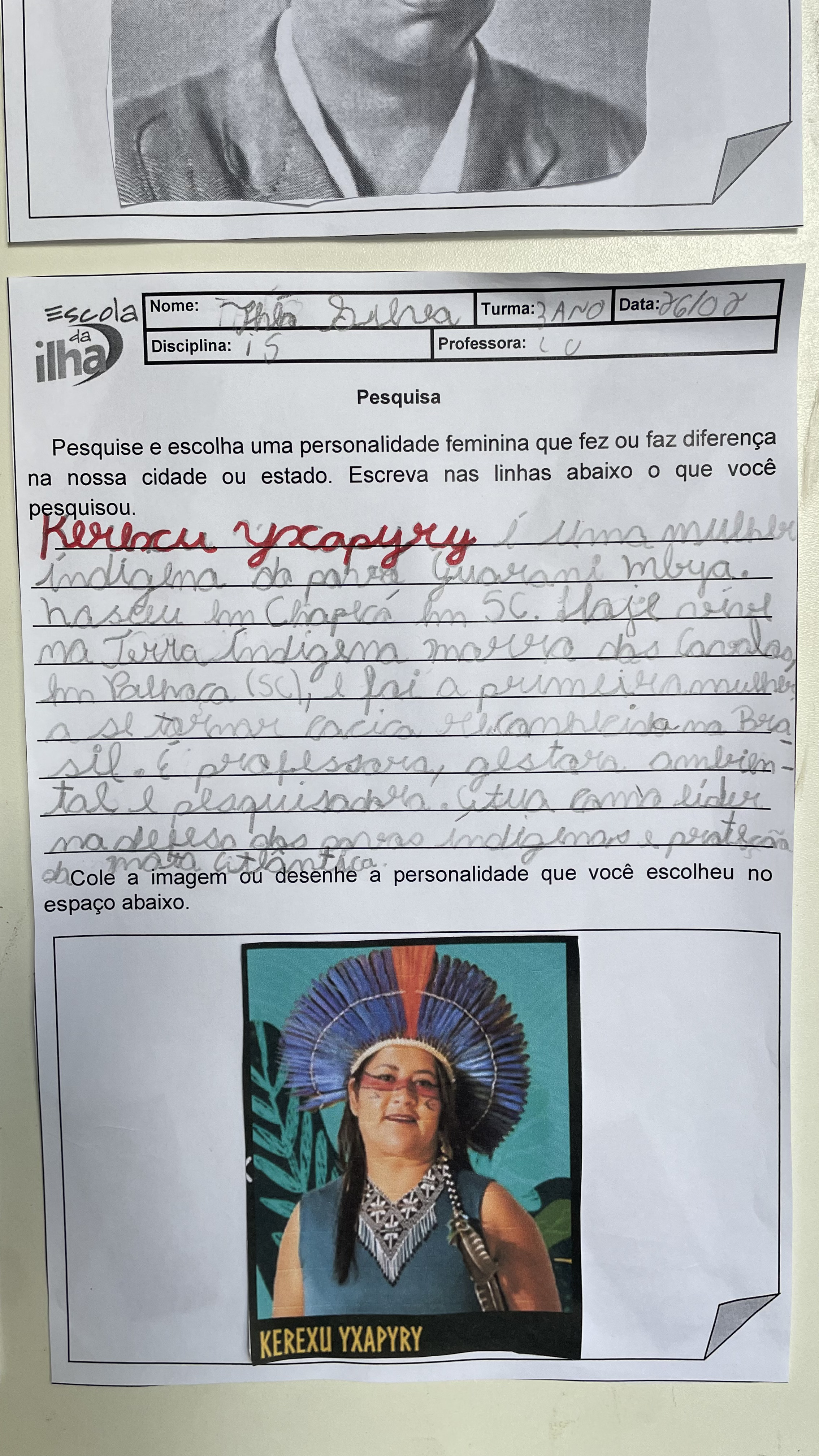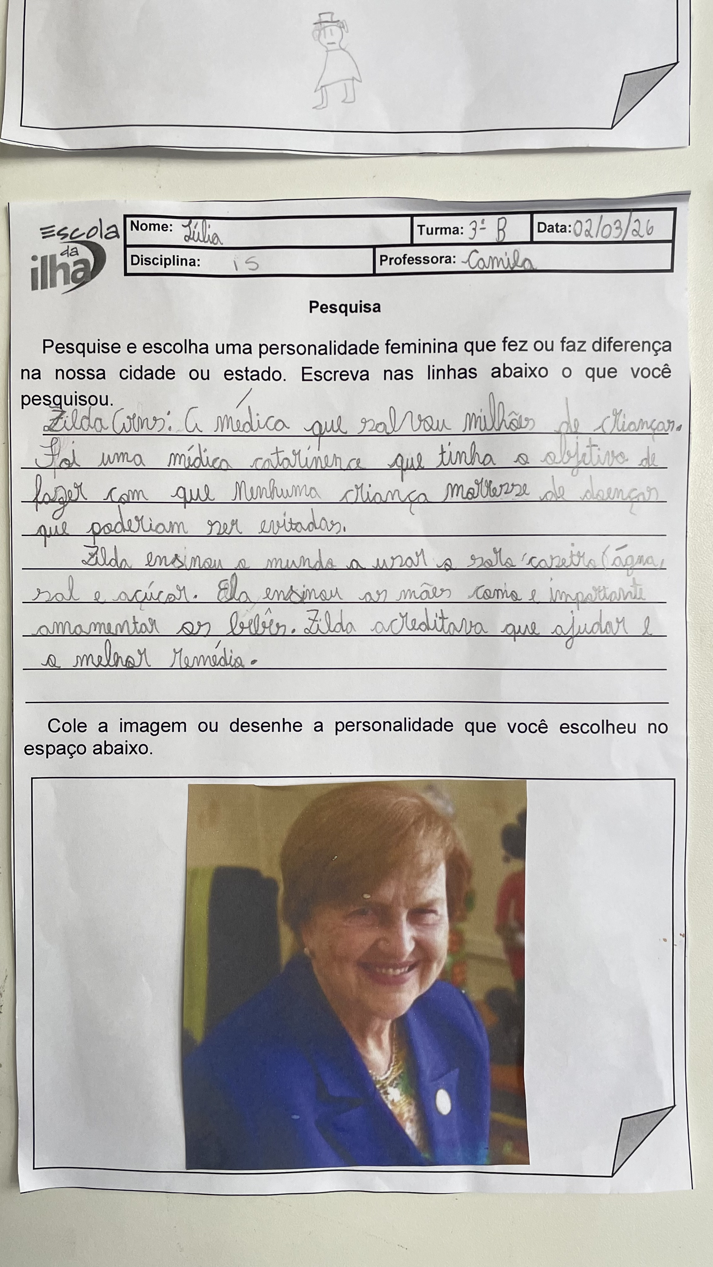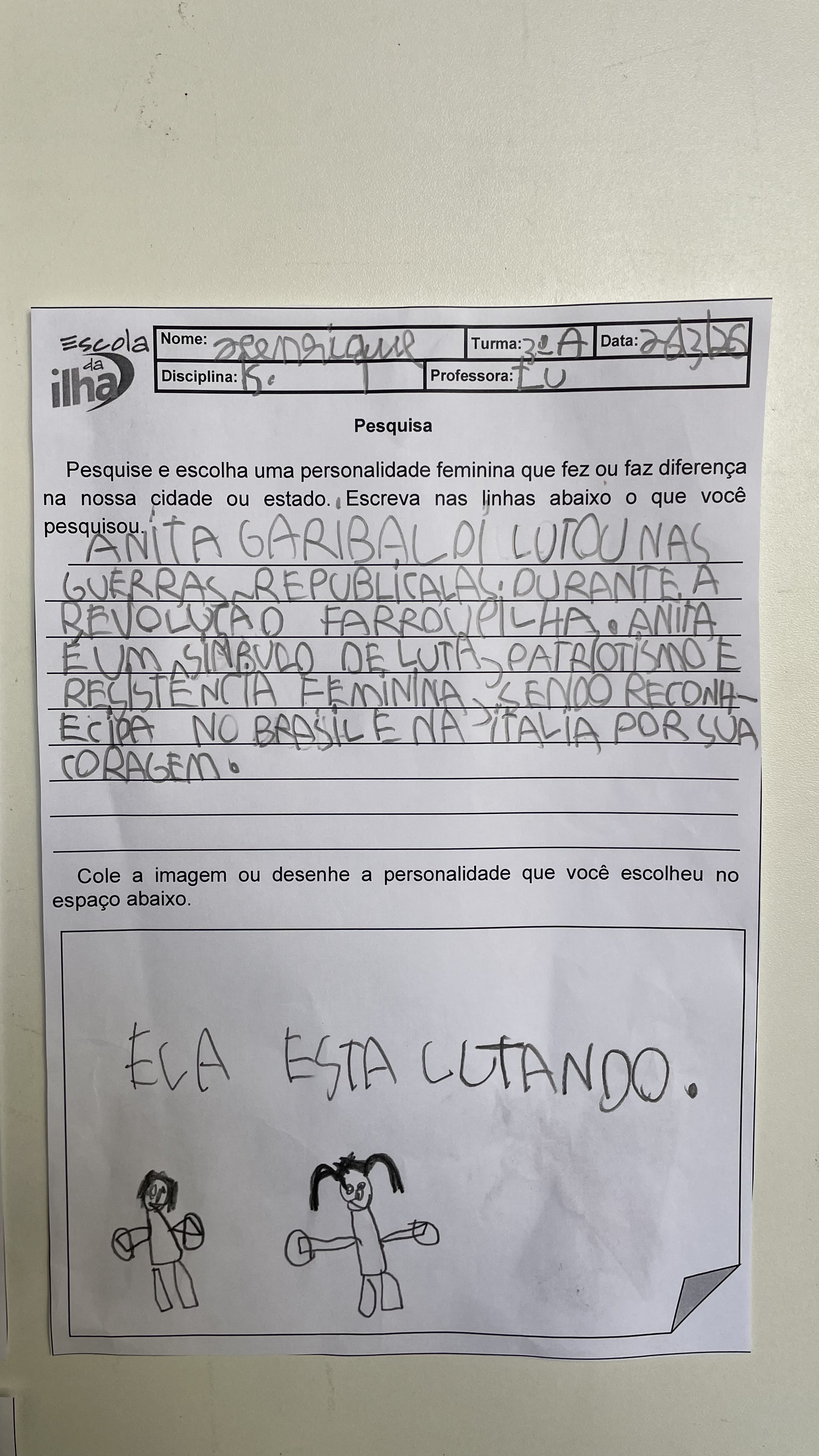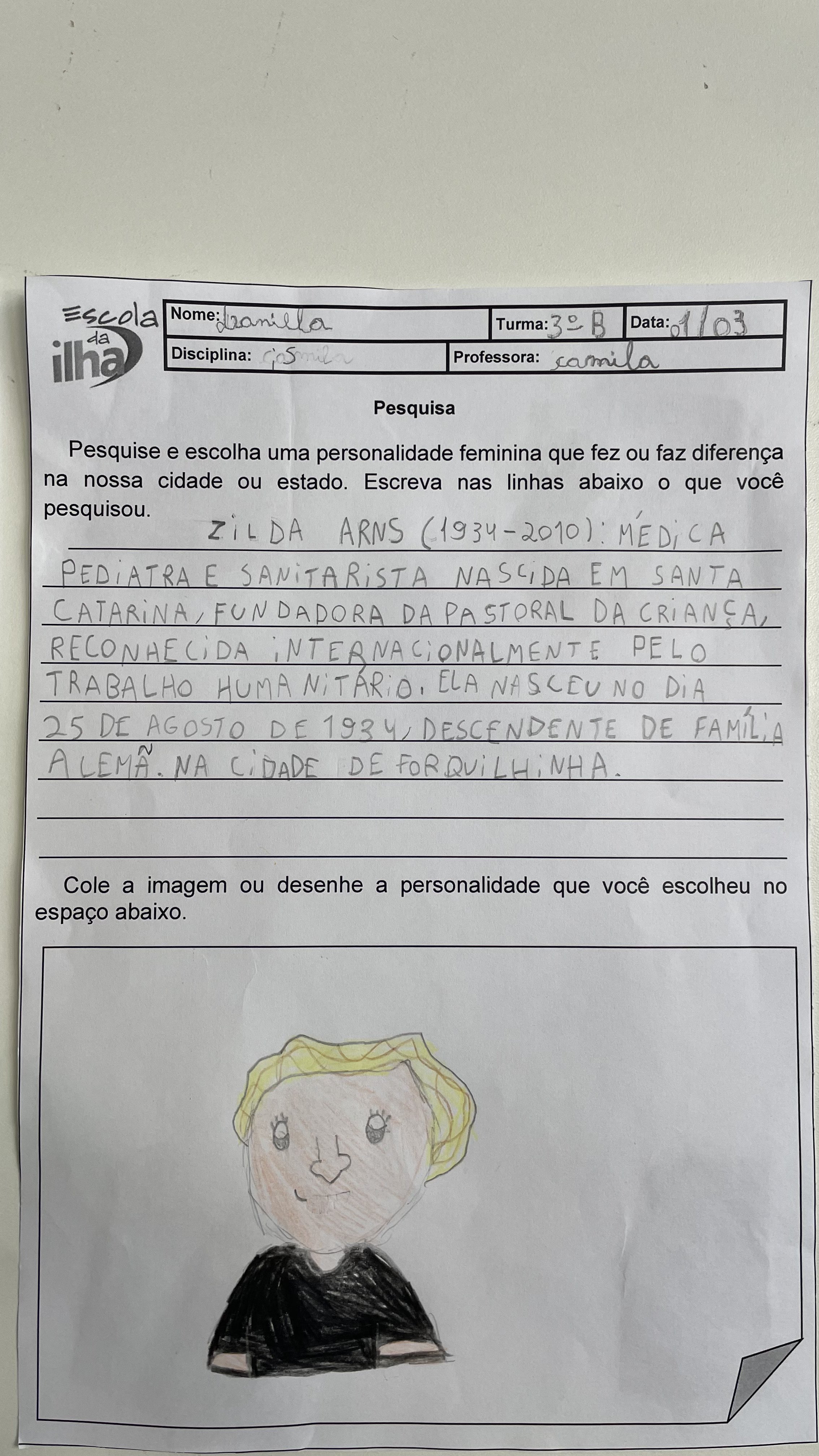 No mês da mulher, os 3º anos da Escola da Ilha realizaram um trabalho sobre mulheres que fizeram história. Entre elas, um nome apareceu diversas vezes nas pesquisas das crianças: Antonieta de Barros. Nascida em Florianópolis em 1901, ela foi professora, jornalista e se tornou a primeira mulher negra a assumir um mandato parlamentar no Brasil. Nos trabalhos, os estudantes trouxeram trechos de suas pesquisas sobre Antonieta de Barros, reunindo informações que ajudam a contar a trajetória da educadora catarinense.