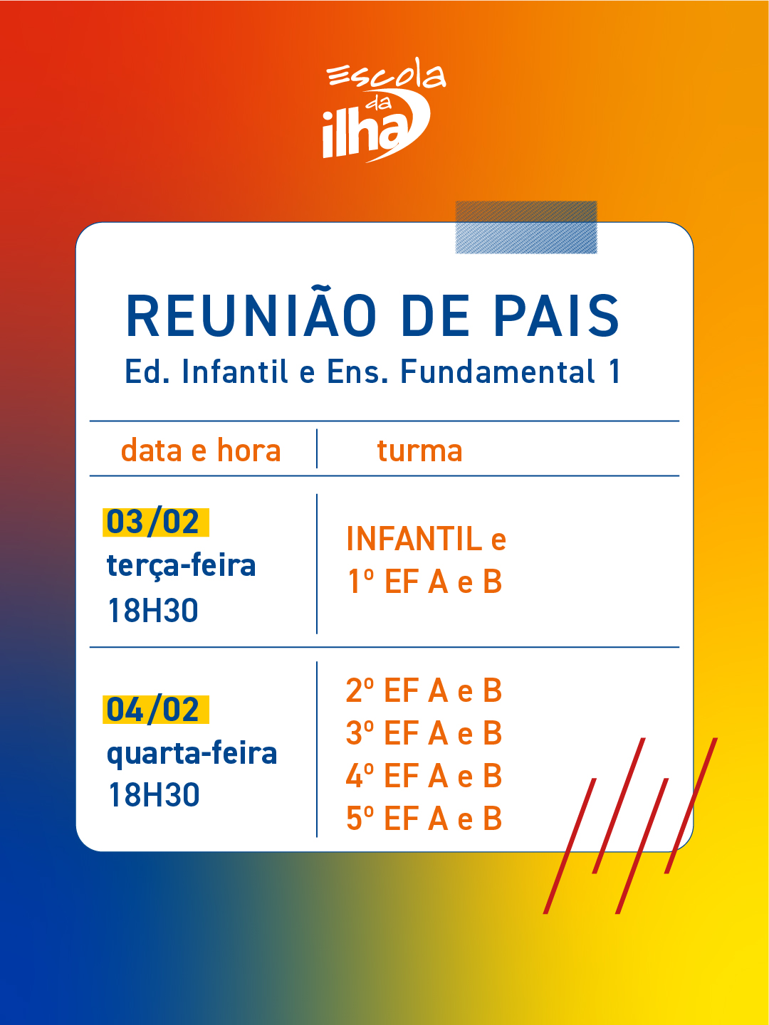 1º ano do EF: 03/02 às 18:30