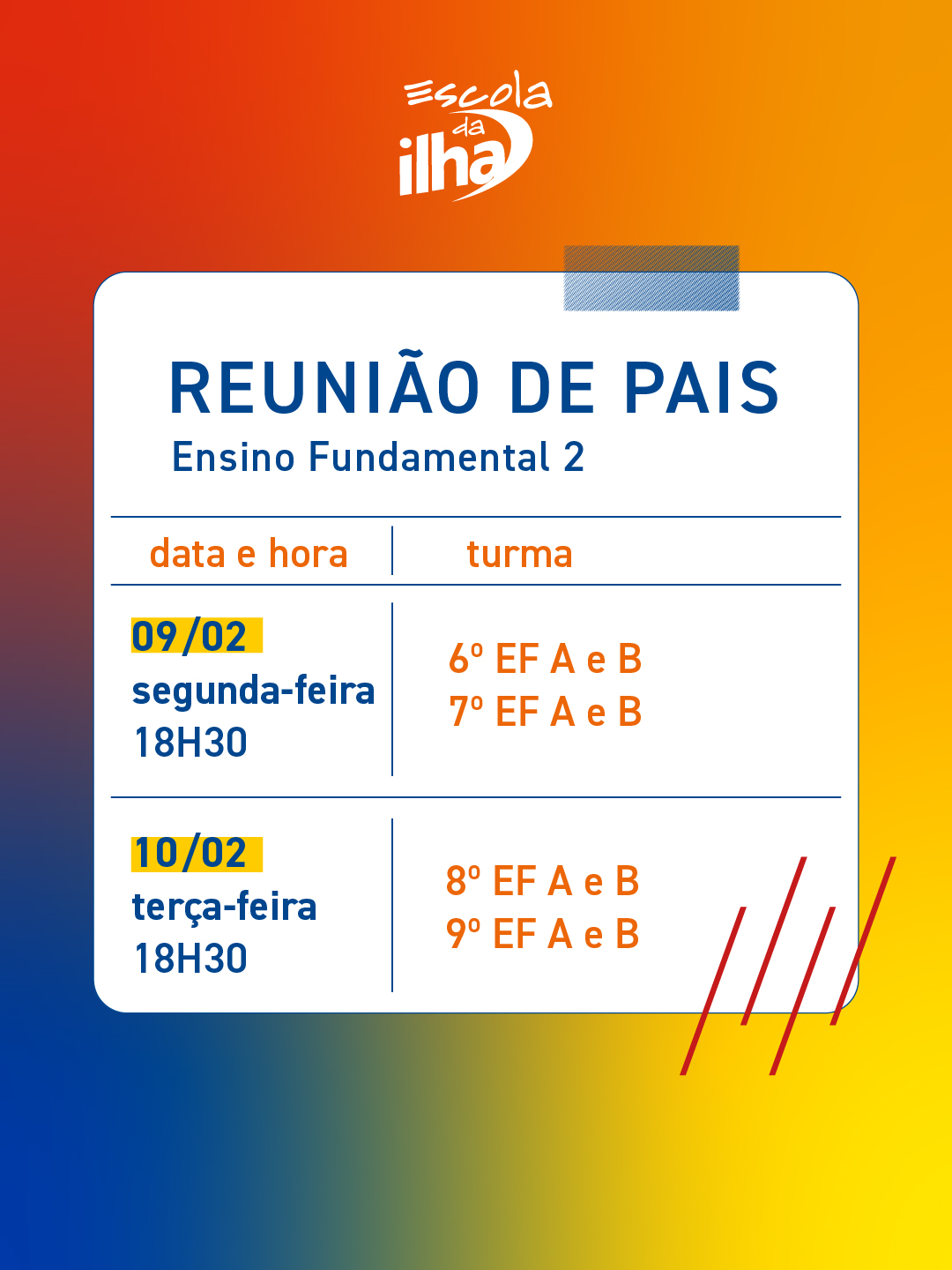 8º ao 9º ano do EF2: 10/02 às 18:30