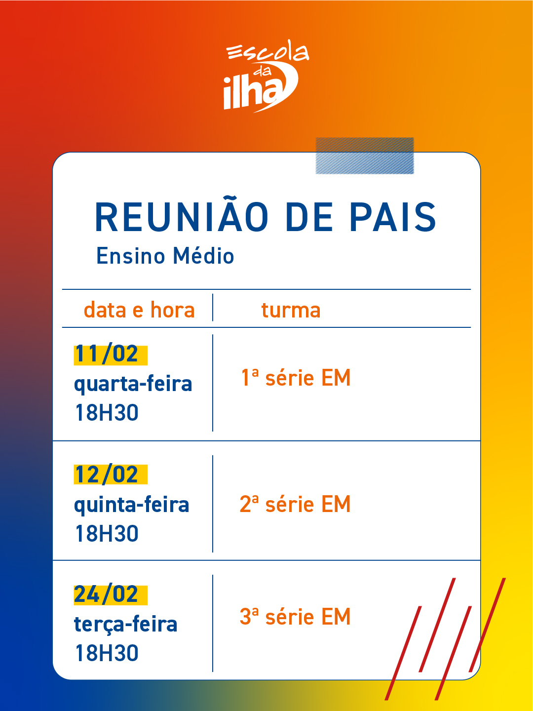 1ª série EM: 11/02 às 18:30